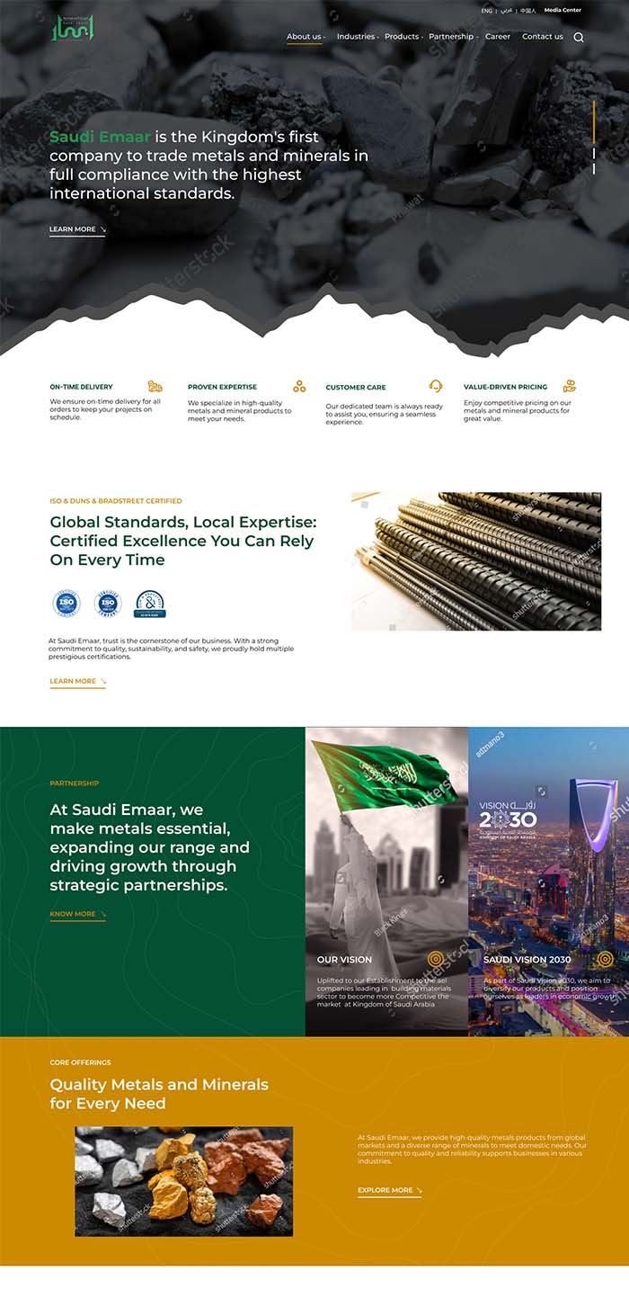 Saudi Emaar approached us to design and develop a corporate website showcasing their metals and minerals trading business and global operations. Sepia delivered a modern, professional, and fully responsive interface aligned with their brand identity. Visit https://saudiemaar.sa/