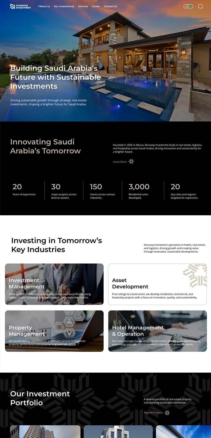 Shorouq Investments approached us to design and develop a corporate website that effectively showcases their diversified investment portfolio, services, and business capabilities. Sepia created a modern and professional interface aligned with their brand identity while ensuring a seamless user experience across all devices. Visit www.shorouqinvest.com